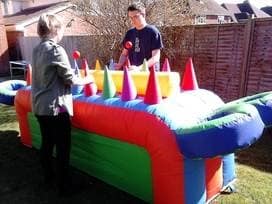 The object of the game is to start at one end and keep your ball floating, moving from cone to cone, propelled only by jets of air.